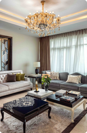Comprehensive end-to-end transformation of residential spaces, including space planning, bespoke furniture, false ceilings, lighting, and décor for a dream home.